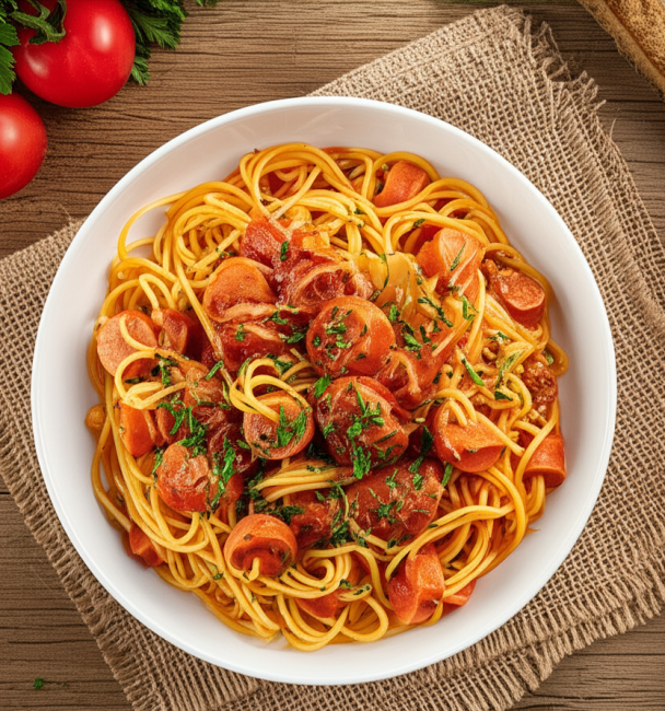Prepara un espagueti con salchicha, práctico y lleno de sabor. Encuentra los ingredientes a precios bajos en Tiendas 3B