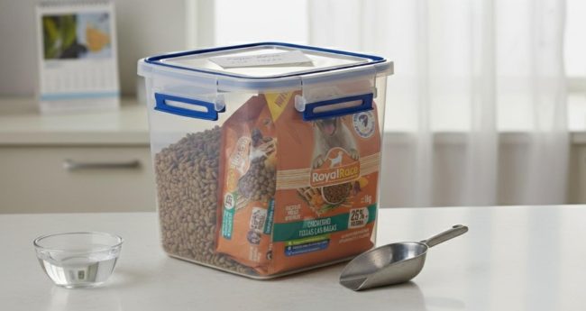 Si ya abriste el empaque, vierte las croquetas en un contenedor con tapa. Así evitas que absorban humedad o malos olores.