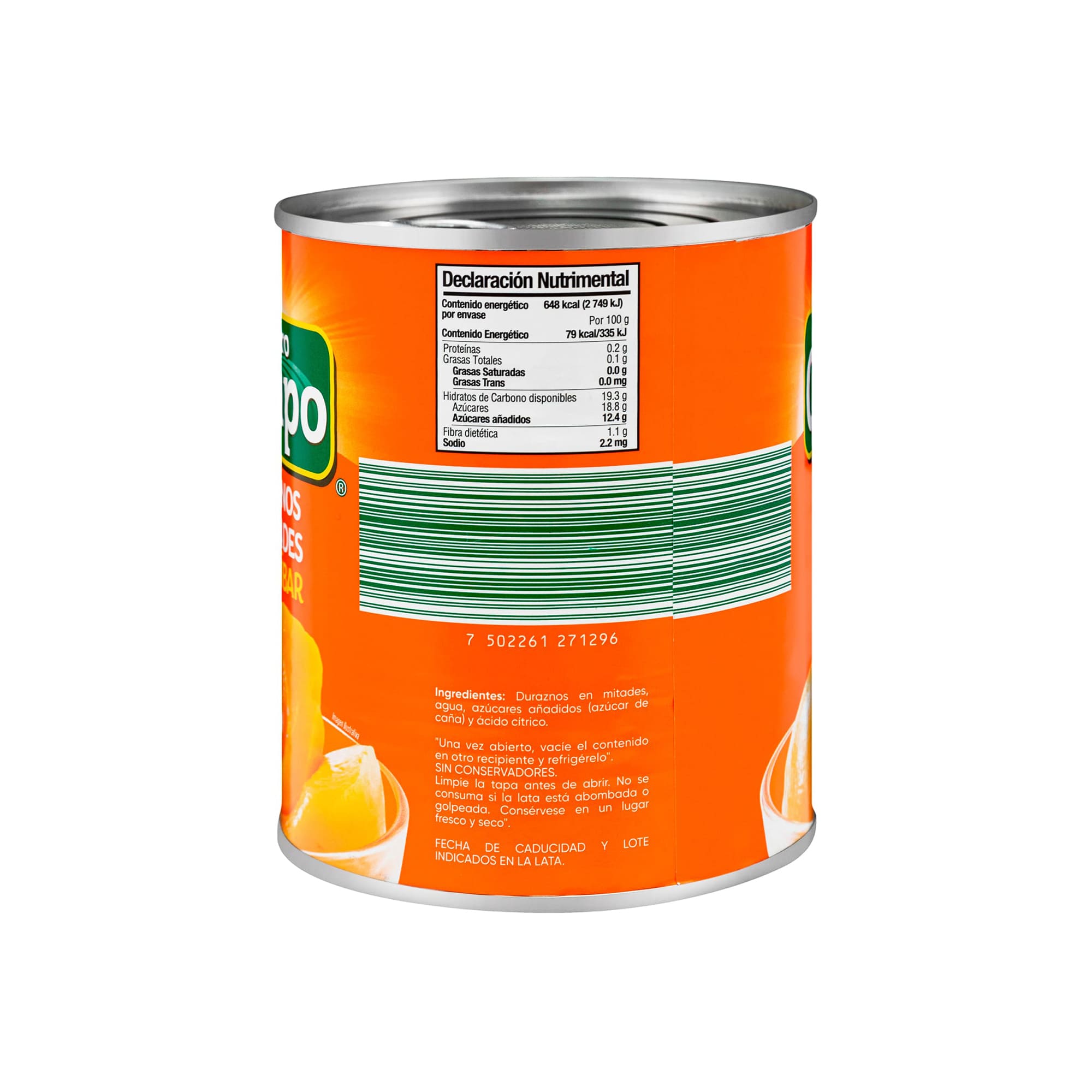 Disfruta un toque dulce y práctico en tus recetas con los Duraznos en Mitades Nuestro Campo. Su presentación en almíbar los hace ideales para servir directamente, agregar a postres, decorar pasteles o combinar en ensaladas de frutas. Cada mitad conserva una textura firme y un sabor equilibrado que facilita su uso en el día a día. Solo abre la lata y disfruta. Una opción accesible y versátil que aporta sabor y practicidad a cualquier preparación.