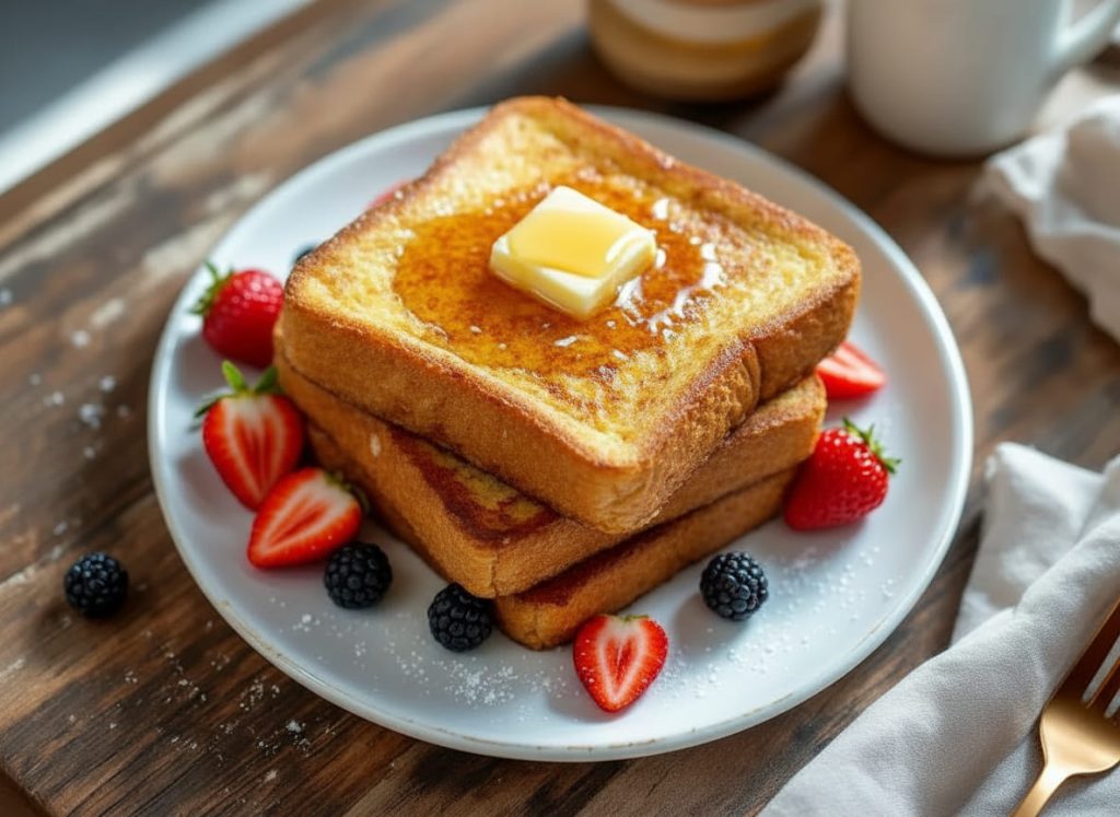 3. En una sartén grande, derríte la mantequilla Vaca Blanca a fuego medio y fríe las rebanadas de pan por ambos lados hasta que estén doradas y ligeramente crujientes.